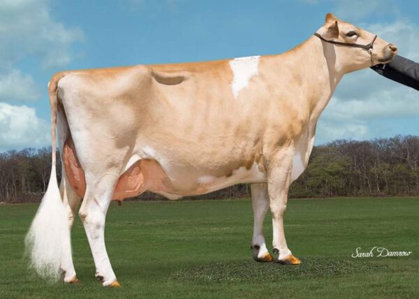 Her genetics are sought after worldwide. Her embryos have been exported to as far away as Tasmania, Australia. She currently has daughters in herds throughout the United States and a son (Tonka) at home that will have semen collected to be sold to other herds.